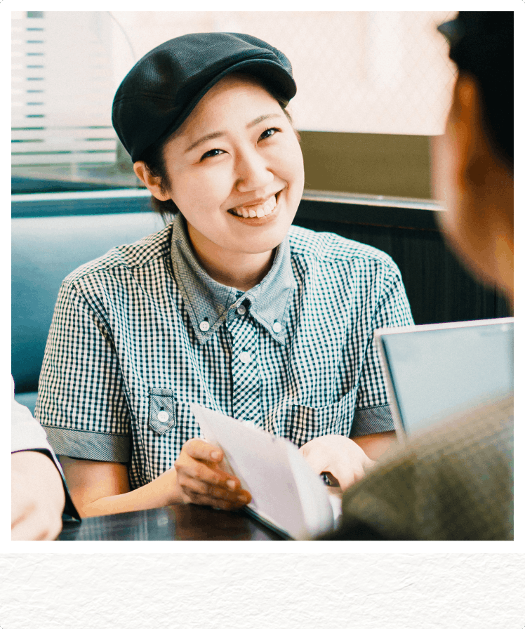 - 1店舗あたりに配属される社員数は平均4人、先輩社員が近くにいることで些細な困り事でもすぐに相談することができます。また、個々人のペースや長所に応じて調理や接客スキルを習得することができるため、それぞれが思い描く成長を実現できる環境があります。
