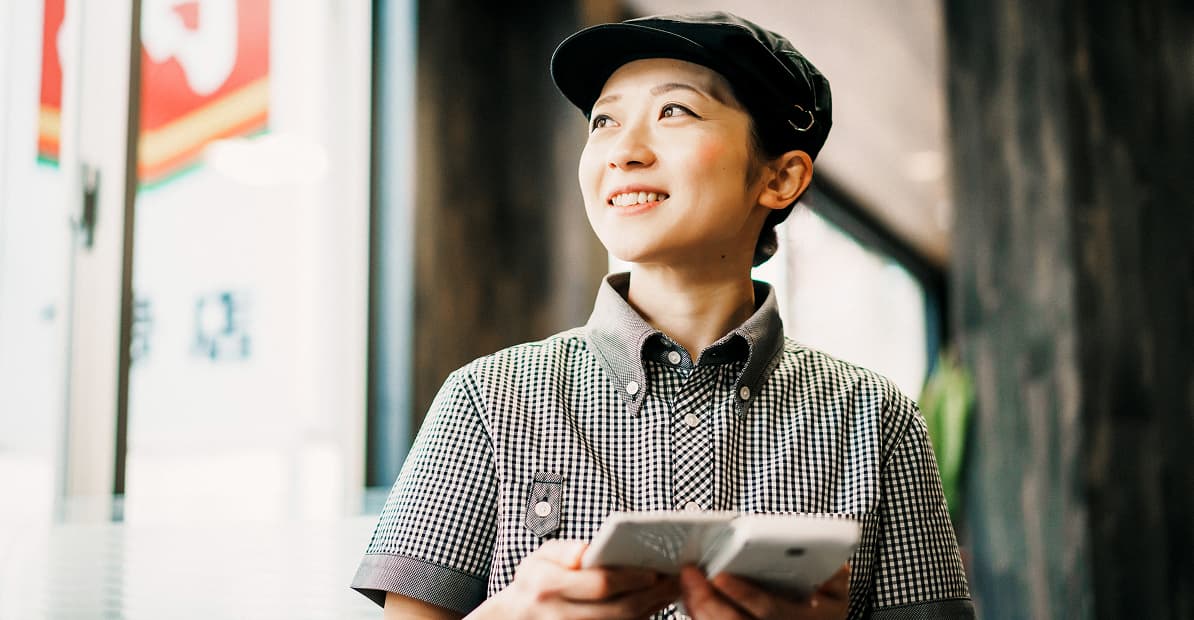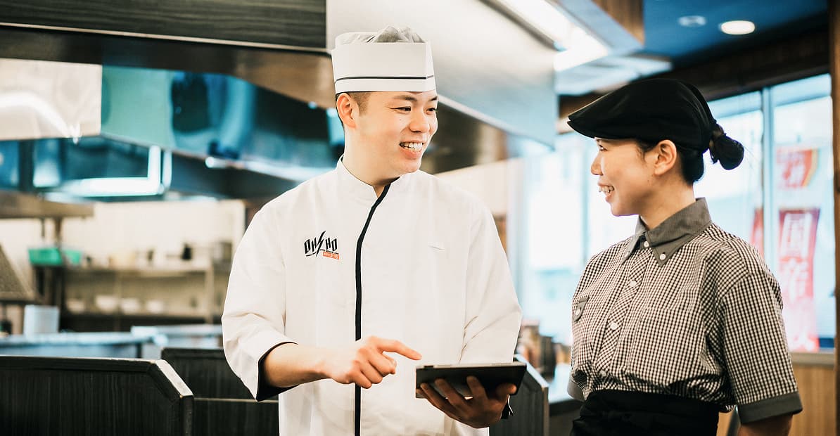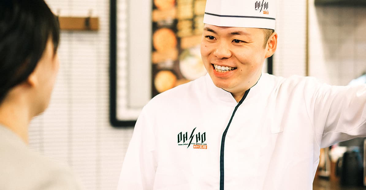 大学1年生のとき、妹の紹介を受けてはじめたのが、餃子の王将のアルバイトです。緊張もありましたが、優しい仲間に囲まれ、すぐに打ち解けることができました。何より印象的だったのは、店長や社員の方が料理を作る姿です。厨房に立つ背中がとにかく格好良くて、「料理やサービスでお客様を喜ばせたい」、「店長になりたい」と、自然と思うようになっていました。